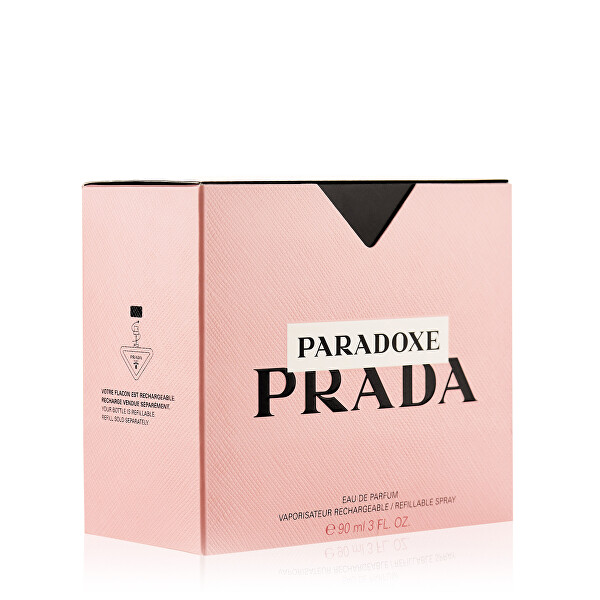 • plnitelný flakon ve tvaru ikonického trojúhelníku Prada